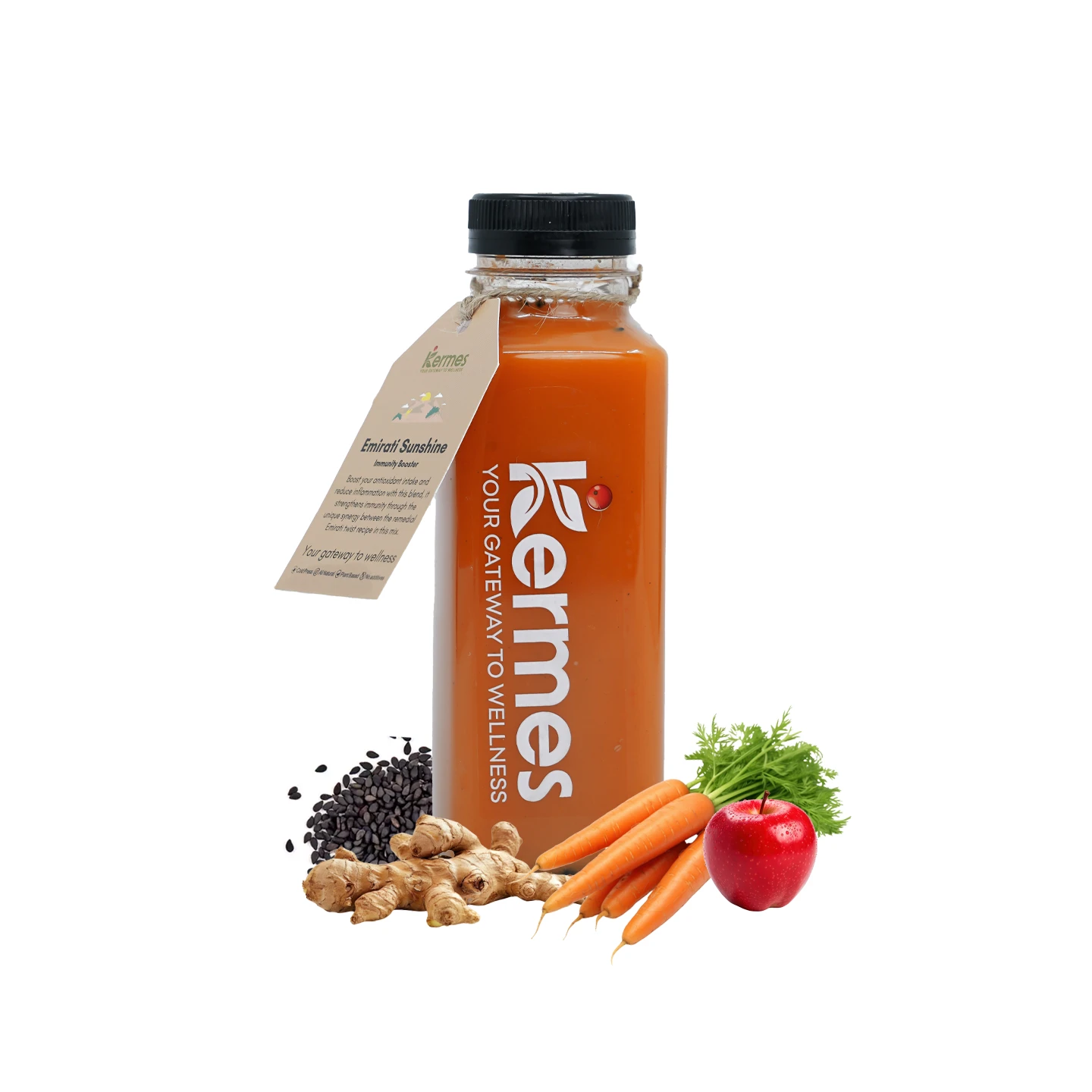 Carrot, Red Apple, Green Apple, Ginger, Lemon, Turmeric, Black pepper, Blackseed