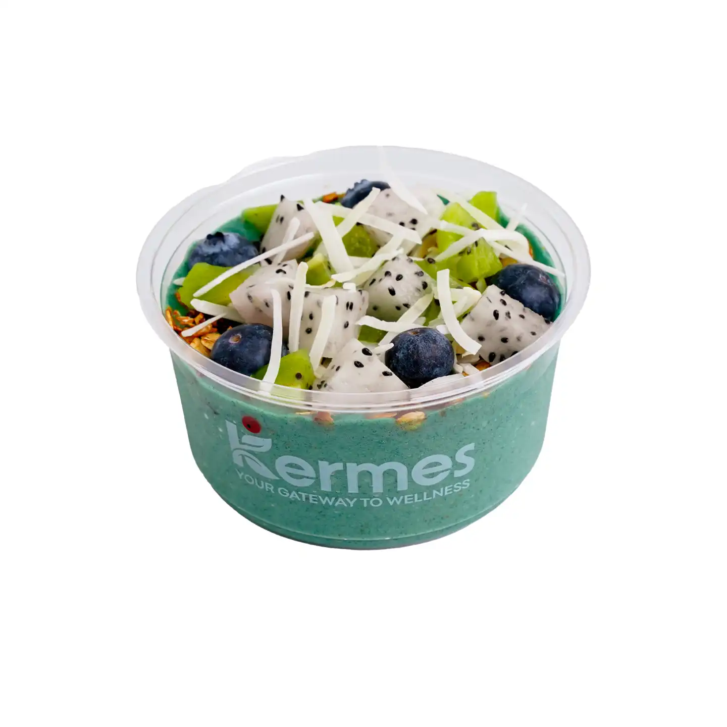 Beautiful eatable refreshing bowel rich with protein from spirulina, this smoothie bowl delivers the perfect mix of quick and sustained energy from the natural sugars in bananas and dates. Ideal for muscle repair, endurance, and stamina, it supports your active lifestyle. The prebiotic benefits of soluble fiber from bananas, dates, and granola promote a healthy gut microbiome and digestive health. This bowl the ultimate nutrient-packed treat!